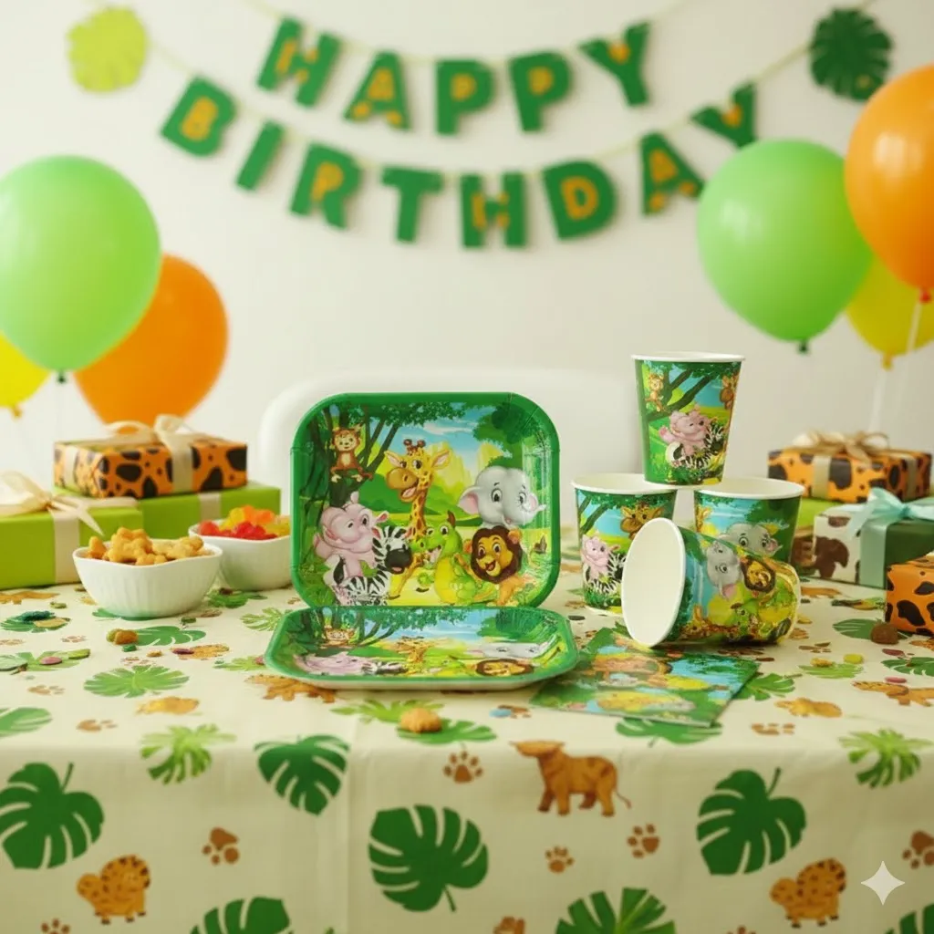 با ظروف یکبار مصرف تم تولد حیوانات جنگل تولدیا هم جشنت رو با تم هماهنگ میکنی، هم کلی وقت صرفهجویی میکنی، هم خیالت راحته که همهچی تمیز و مرتبه. فقط کافیه بچینیشون، مهمونا میان و همه چیز آمادهست برای یه تولد بهیادموندنی!